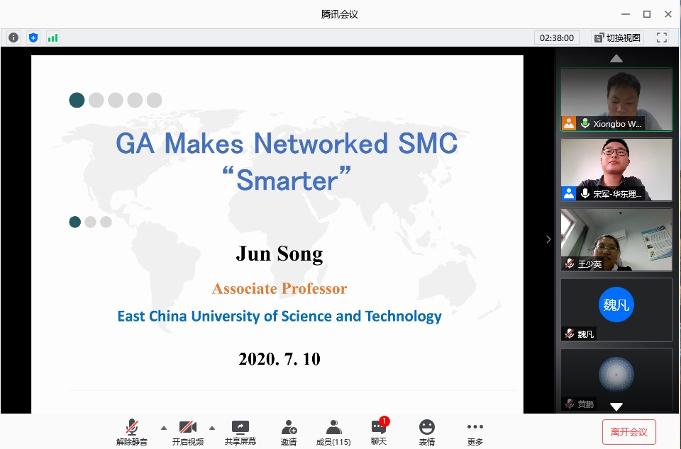 7月10日下午,华东理工大学宋军副研究员应邀为我院师生作了题为“GA Makes Networked SMC Smarter”的在线学术报告。学院100余名师生参加了此次报告会。