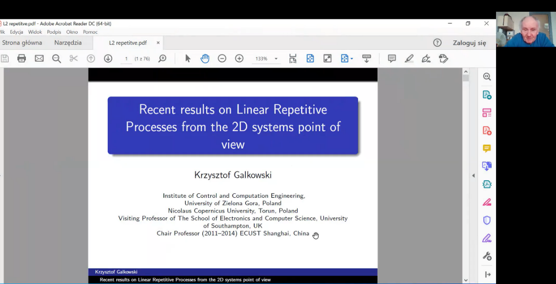 Krzysztof Galkowski教授主讲的内容包括三个板块,第一板块“Elements of multidimensional systems and repetive processes theory and applications”讲授多维信号和系统的基础知识,并讨论一些基本的模型和应用;第二板块“Repetitive processes theory and applications – continuation”从多维系统的角度讲授各种重复系统模型的性质、控制及其应用;第三板块“Iterative Learning Control (ILC)”重点讲授迭代学习控制的一些高级设计方法及扩展应用。
