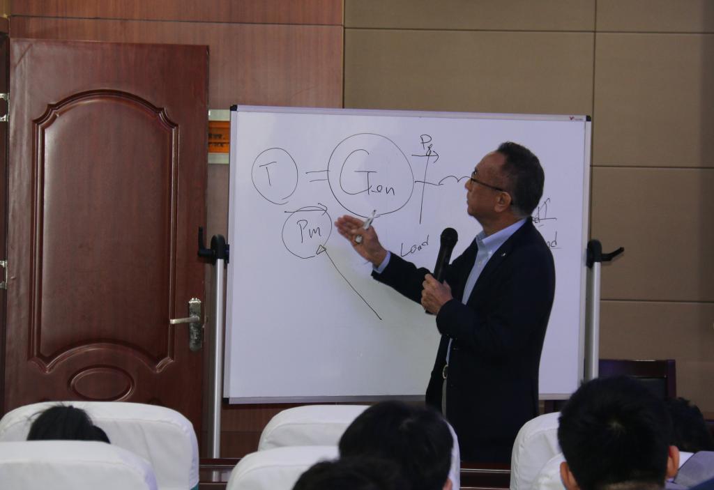横山教授讲授的主要内容为智能电网发展及电力系统稳定性、大规模储能及先进逆变器技术、电力系统潮流分析、亚洲国家微电网及国际电网互联。四场授课的主题分别为:Smart Grid Development and Power System Stabilization、Large Scale Battery and Advanced Inverter Technology、Electric Power Flow Analysis、Micro Grid for Asian Countries and International Power Grid Connection。